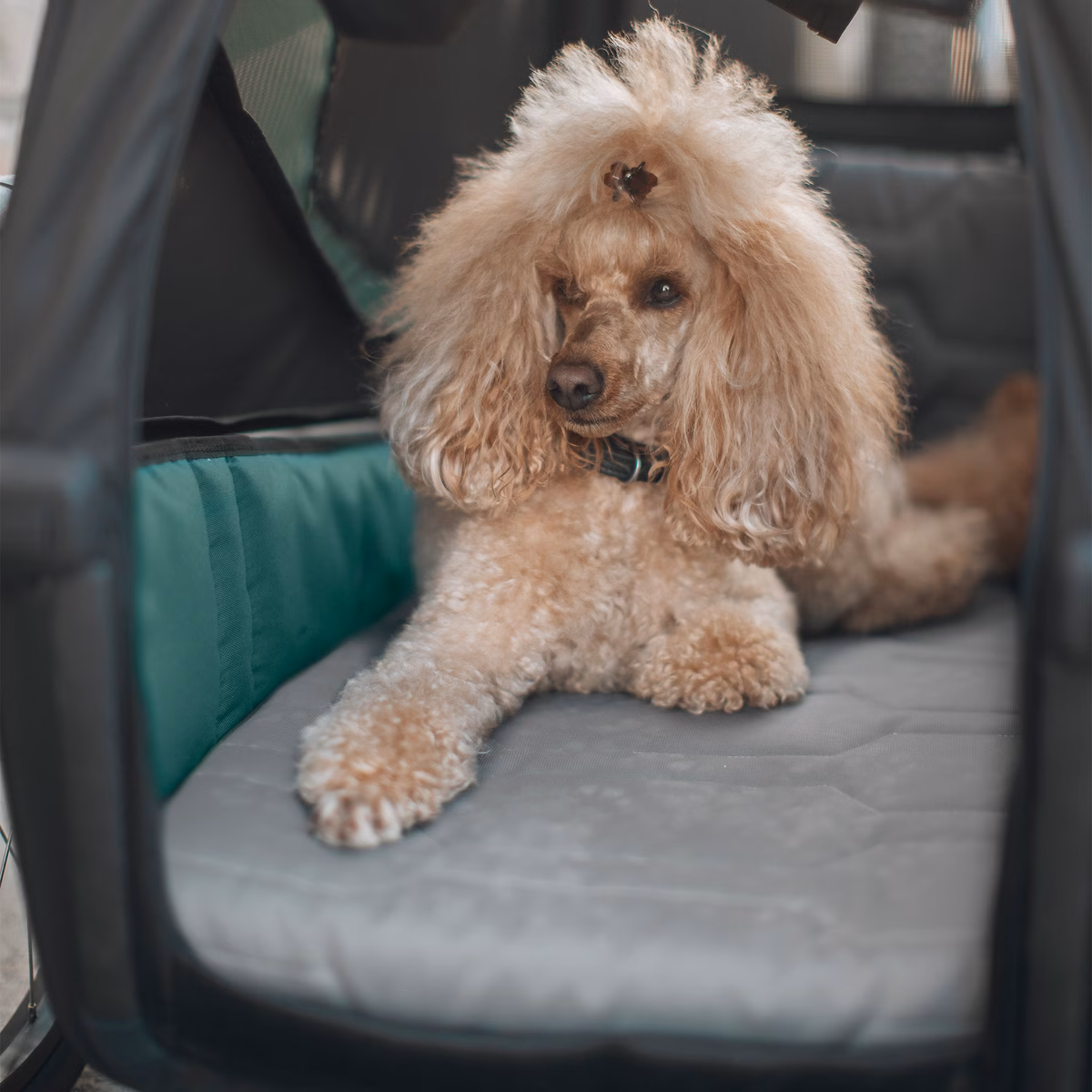 Меко и удобно креветче за кучиња како додаток за приколката за велосипеди Thule Bexey. Со дополнителна удобност и перниче за кучето.