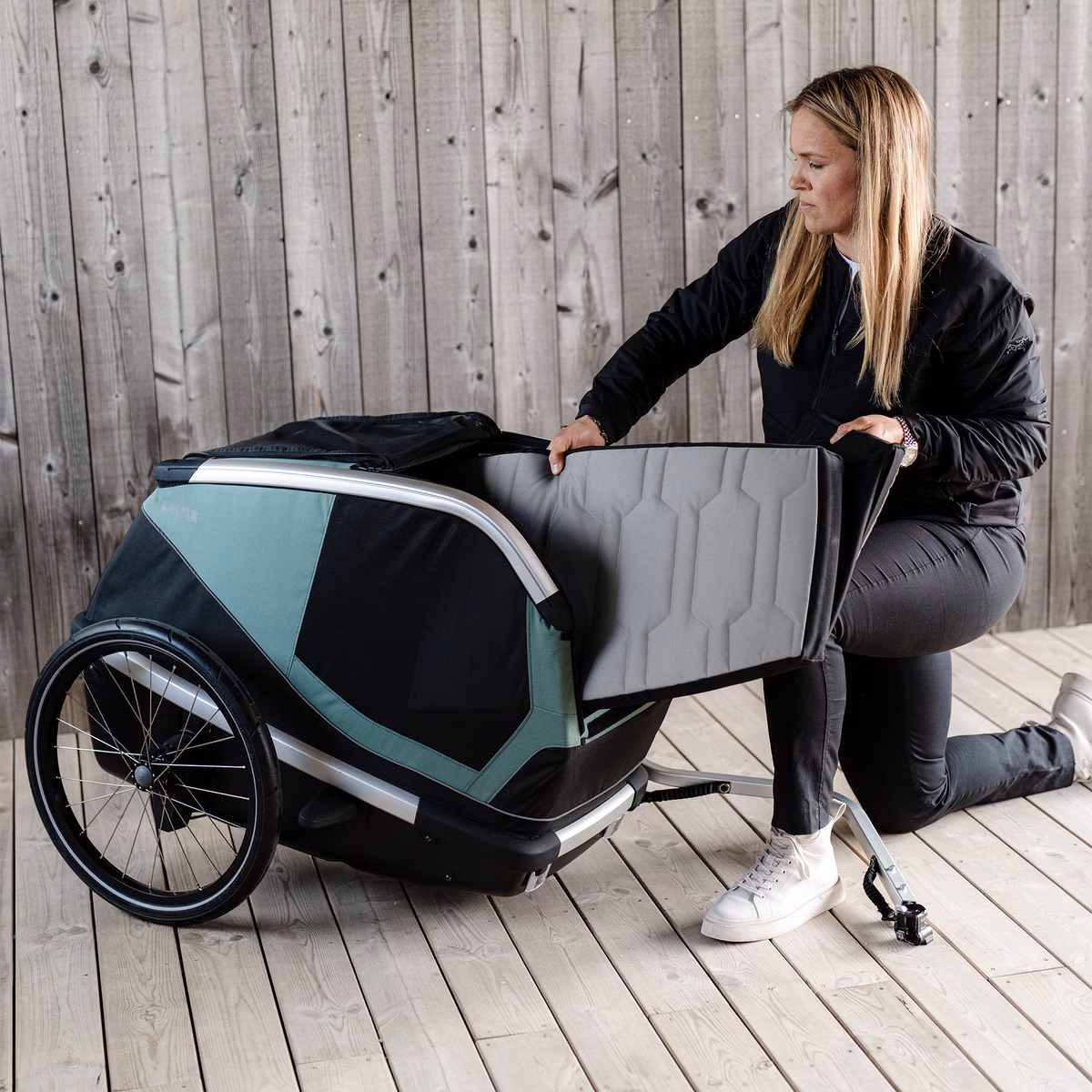 Креветот за кучиња Thule Bexey, достапен како додаток, нуди дополнителна удобност и перниче. Тој значително го подобрува веќе перничениот под на приколката, правејќи го патувањето уште попријатно и обезбедувајќи пријатно и безбедно место за релаксација, без разлика дали во познати паркови или на новоистражени патеки.
